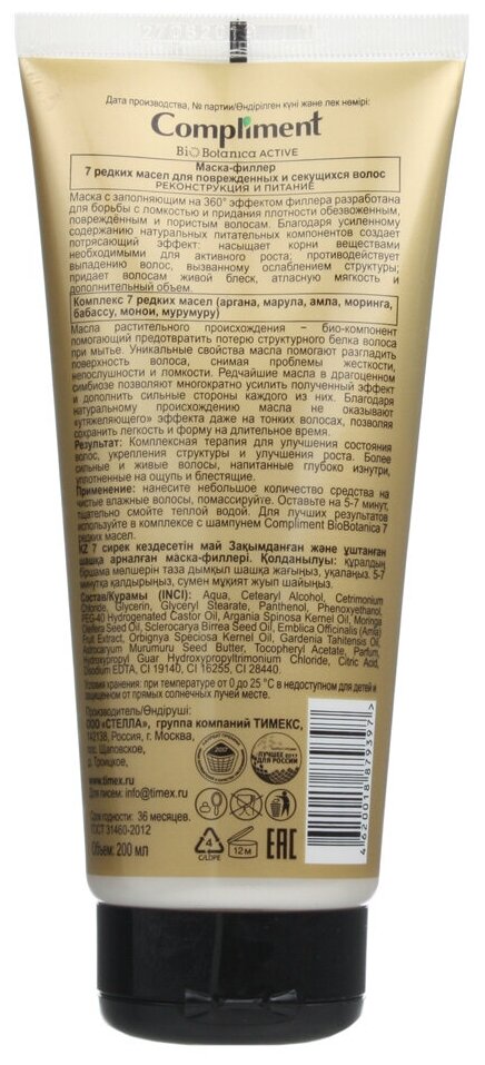 Compliment Biobotanica active Маска-филлер 7 редких масел для поврежденных и секущихся волос, 200 мл 1 шт 186 ₽