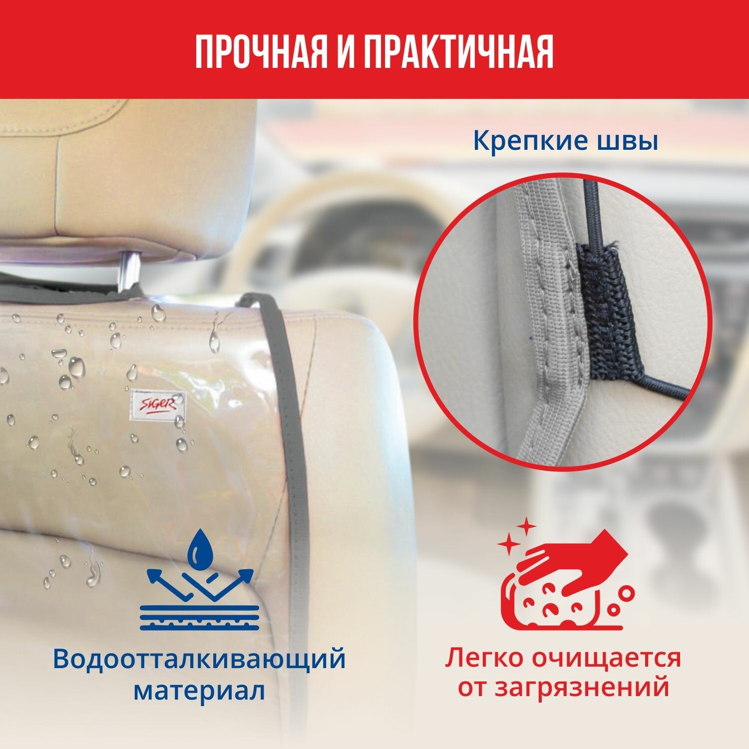 Накидка защитная на спинку сиденья siger safe-3 прозрачная 630 ₽