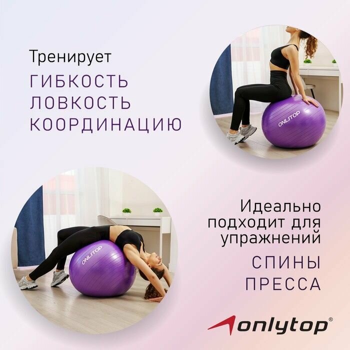 10 цен на Фитбол ONLYTOP, диаметр75 см, 1000 г, антивзрыв, цвет фиолетовый