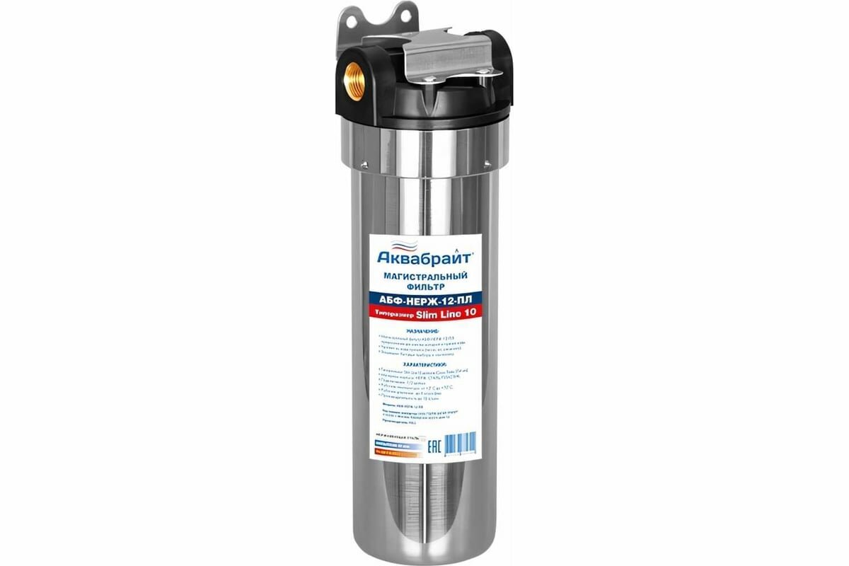 Магистральный фильтр Аквабрайт АБФ-НЕРЖ-12, Slim Line 10", 1/2"