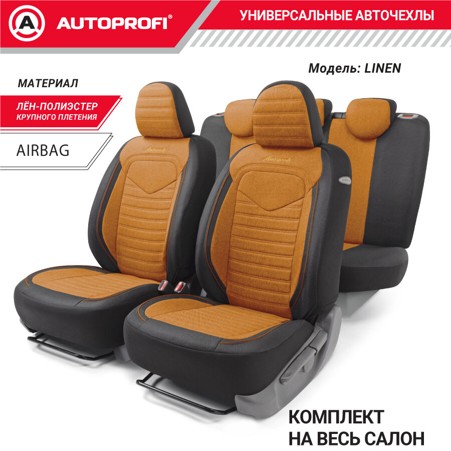 AUTOPROFI LIN-1505 BK/ORANGE Чехлы универсальные AUTOPROFI LINEN LIN-1505 BK/ORANGE лён чёрные/оранжевые
