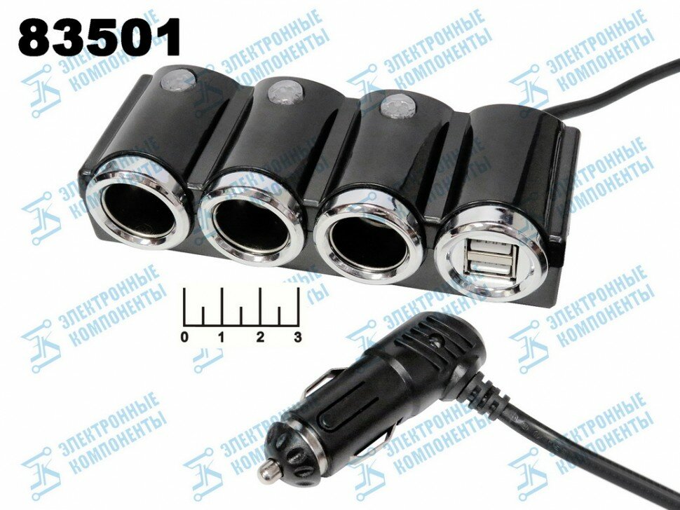 Тройник гнезда прикуривателя Olesson 1503 3гнезда 2USB