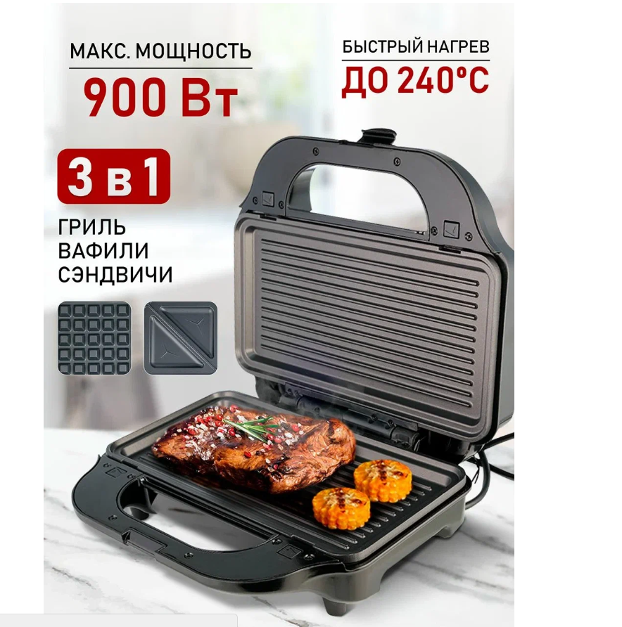 | Дополнительная информация | размер рабочей поверхности: 28.5x15.2 см; комплектация: пластина для приготовления сэндвичей 2шт., пластина для приготовления вафель 2 шт., руководство пользователя |