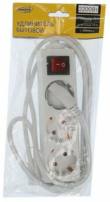 Удлинитель Luazon Lighting, 3 розетки, 1,8 м, 10 А, 2200 вт информация: