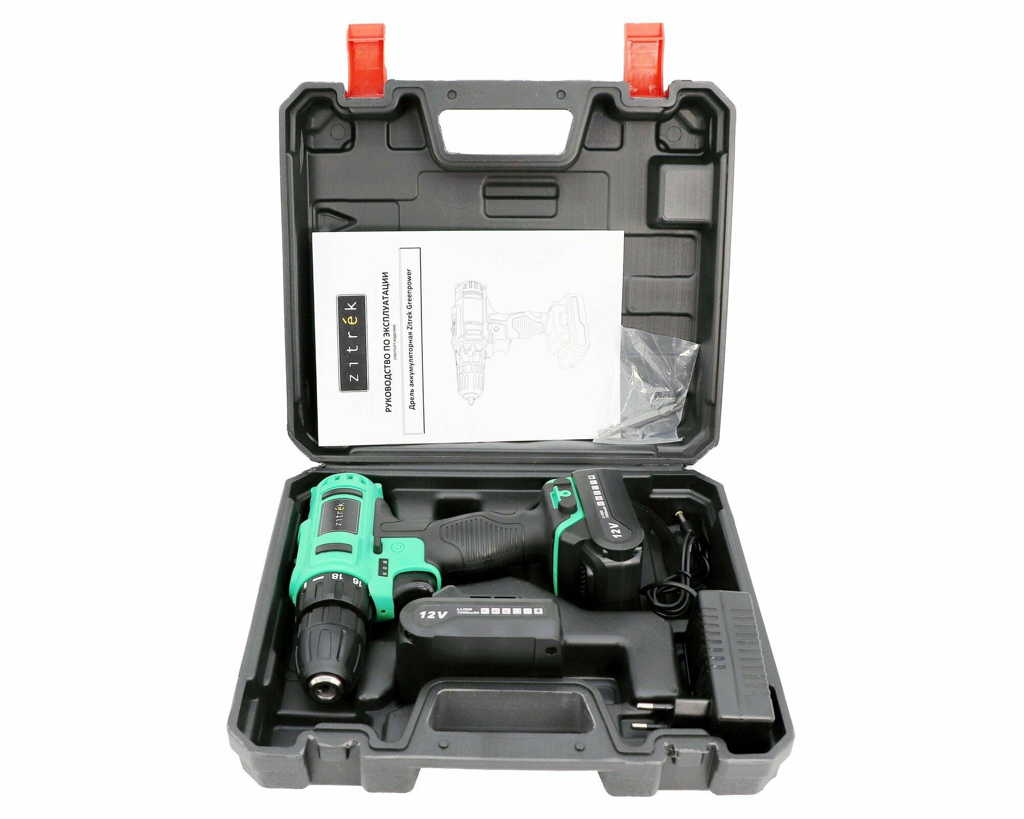 Дрель аккумуляторная Zitrek Green 12-Li (12В, Li-ion аккумулятор 2шт, ЗУ, бита, кейс) ZITREK