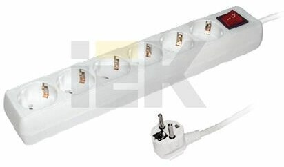 Удлинитель IEK У06К-выключатель, 6 мест, 2Р+PЕ, 5 метров, 3х1мм2, 16А/250 Wyp10-16-06-05-zk-n .