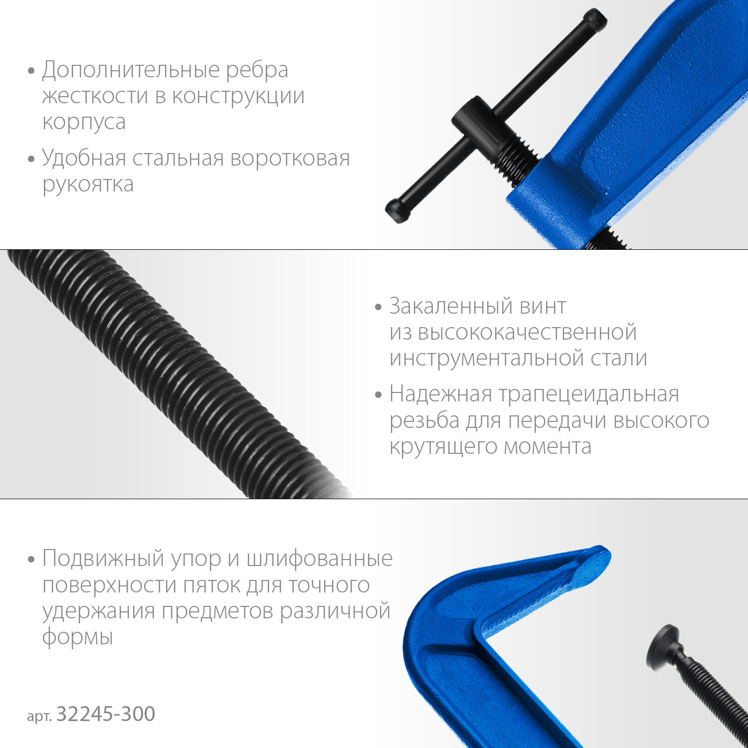 ЗУБР ПСС-300, 300 мм, чугунная струбцина тип С (G-образная), Профессионал (32245-300) информация: