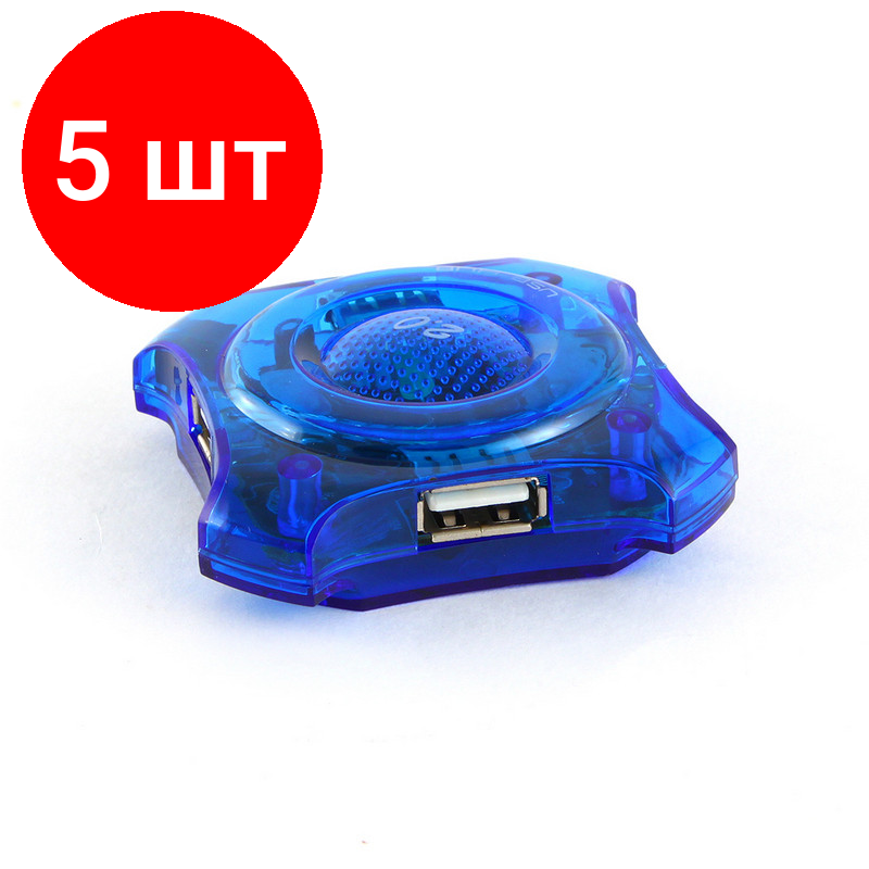 10 цен на Комплект 5 штук, Разветвитель USB 2.0 Gembird UHB-C224, 4 порта, прозр.корпус, блистер