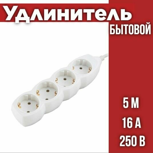 10 цен на Удлинитель бытовой У04 4 гнезда, 5м, с заземлением, ПВС 3х1мм2 16А/250В TDM