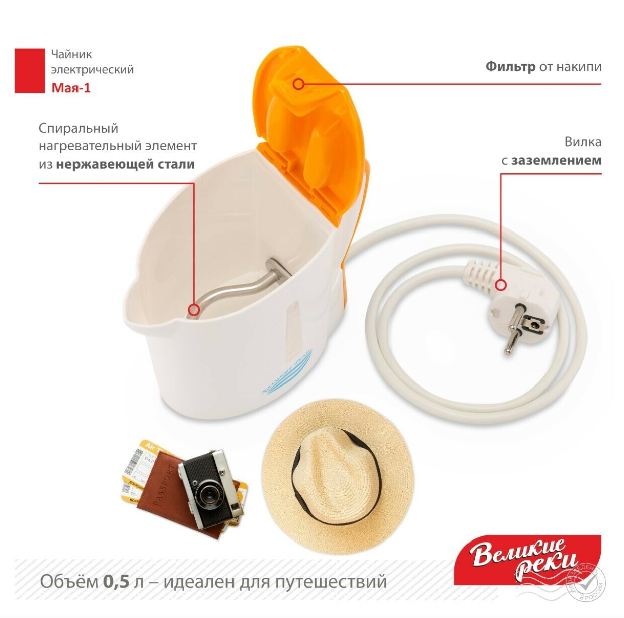 Чайник электрический великие реки Мая-1 0,5 л, 500 Вт, бело-оранжевый