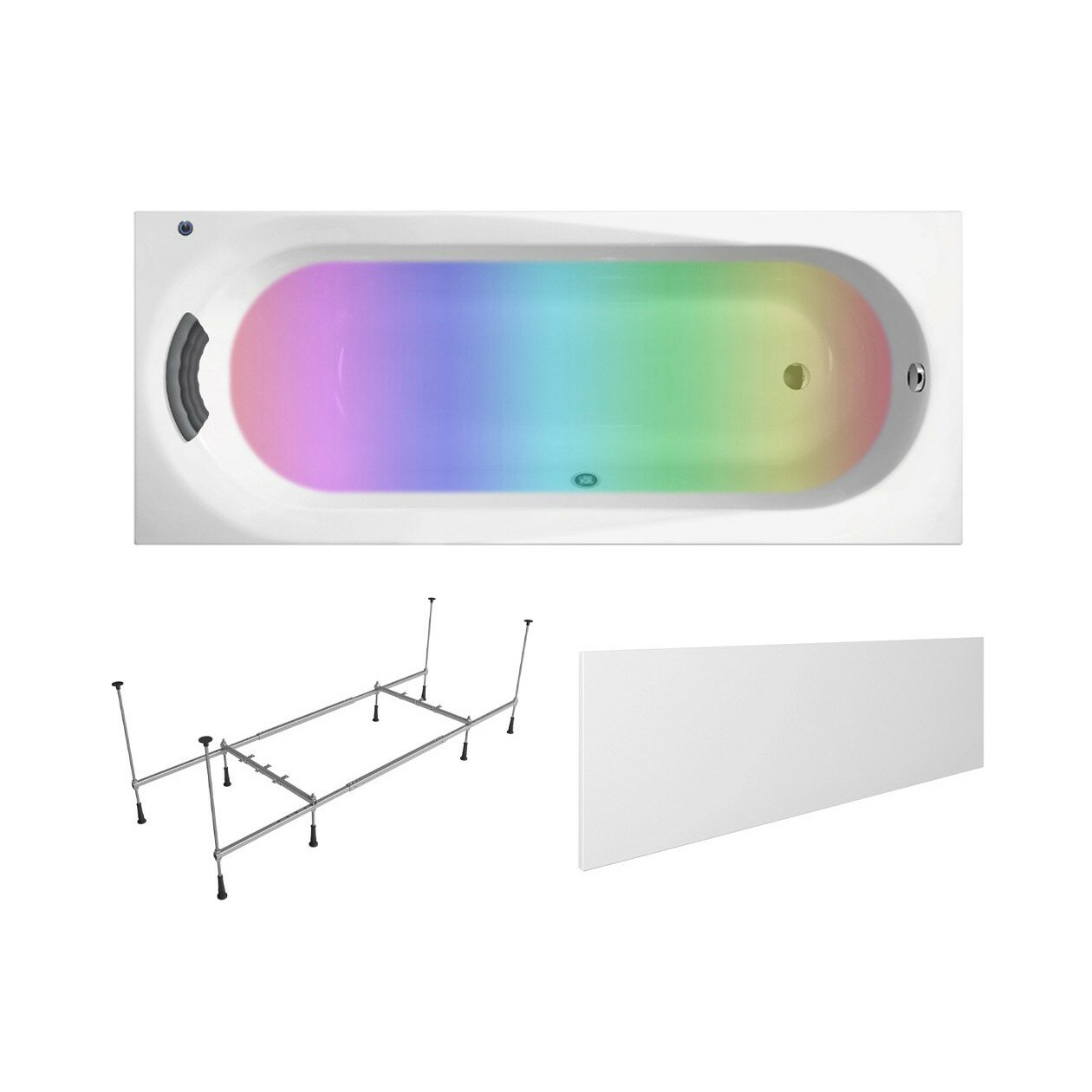 Акриловая ванна 160х70 см Lavinia Boho Biore набор 5 в 1 S4-3501006P: прямоугольная ванна, каркас, подголовник, экран, хромотерапия информация: