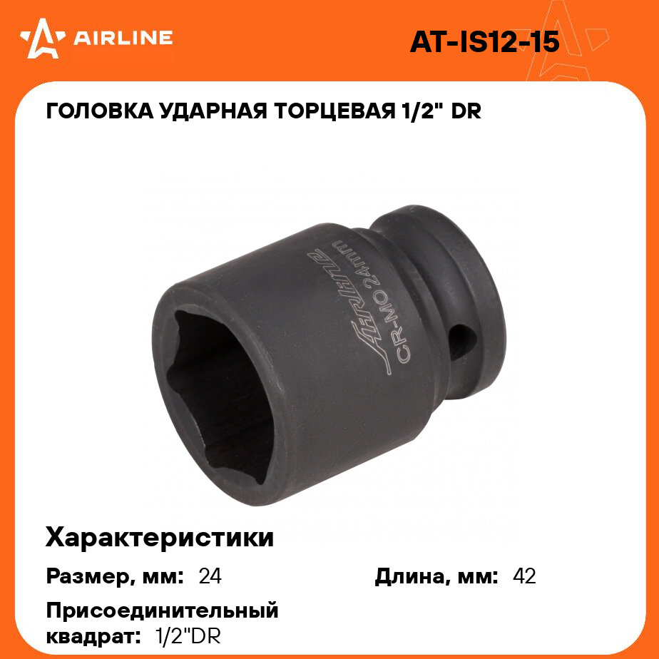 10 цен на Головка ударная торцевая 1/2" DR шестигранная 24мм L=42 мм AT-IS12-15 AIRLINE