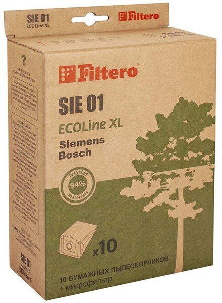 Мешки-пылесборники Filtero SIE 01 ECOLine XL (тип "G ALL"), для пылесосов Bosch, Siemens , бумажные, 10 штук + фильтр 705 ₽