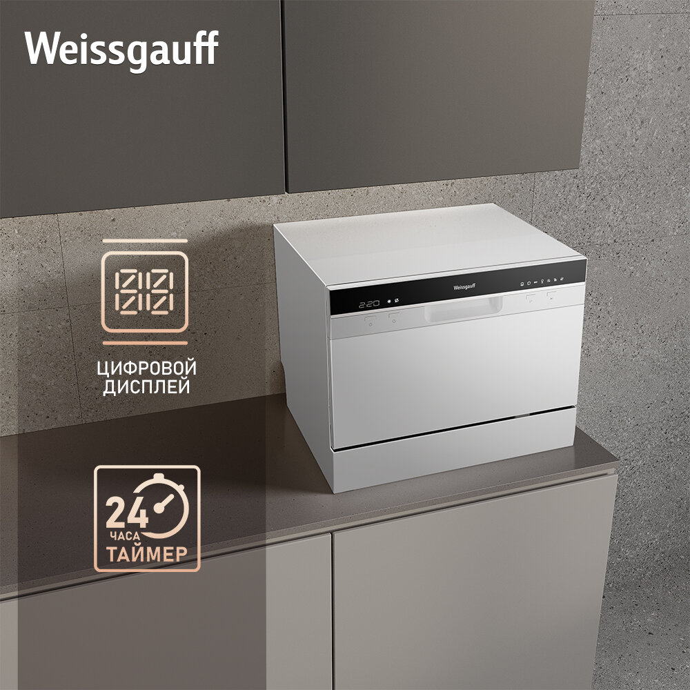 Настольная посудомоечная машина Weissgauff TDW 4017 3 года гарантии, быстрый режим, функция самоочистки, таймер информация: