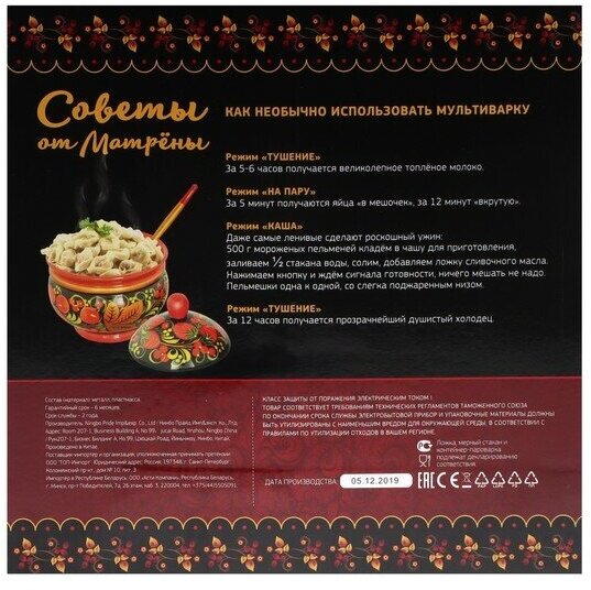 Мультиварка Матрена МА-011 5л, 900 Вт информация: