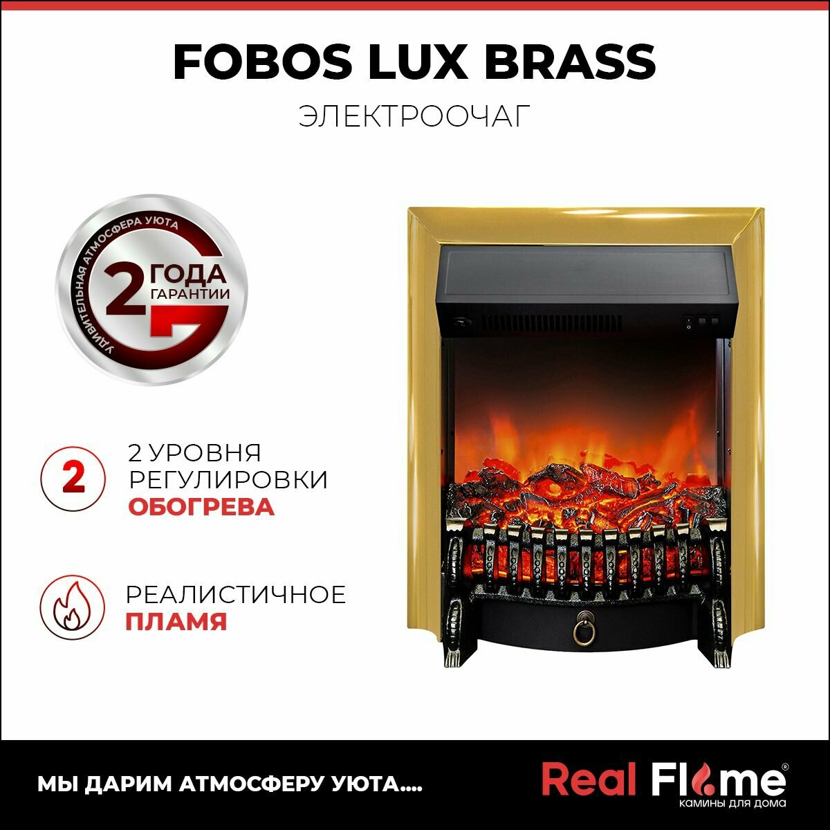 Электрический камин Real Flame Fobos Lux Brass без пульта ДУ, имитация пламени, обогрев