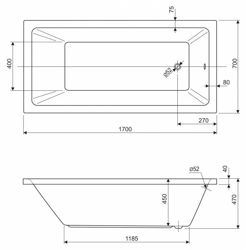 Акриловая ванна Cezares Plane Solo 170-70-45-W37 170х70 PLANE SOLO-170-70-45-W37 информация: