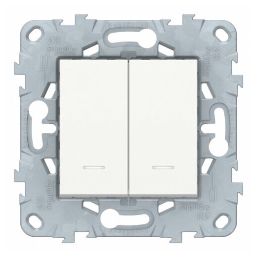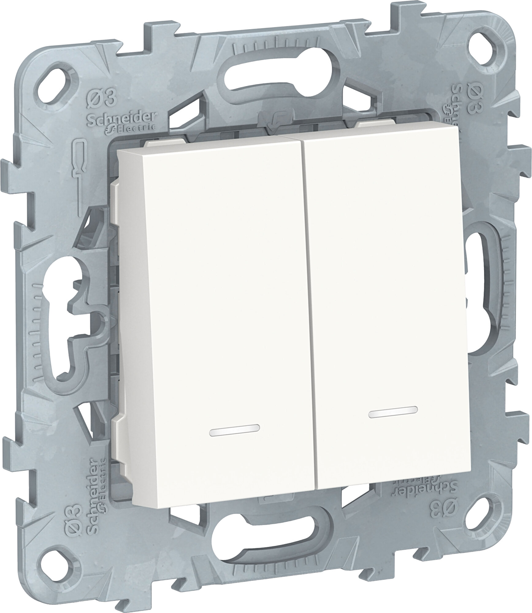 Выключатель 2-клавишный UNICA NEW, с подсветкой, скрытый монтаж, белый. NU521118N Schneider Electric информация: