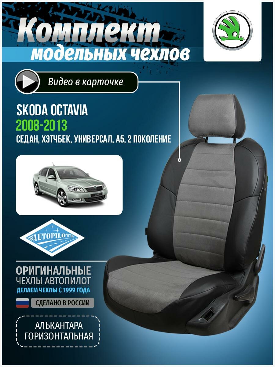 10 цен на Авточехлы для Skoda Octavia 2 A5 2008-2013 Автопилот Серый Алькантара sk-ok-a5khu-chese-a