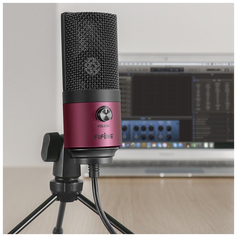 Конденсаторный студийный USB-микрофон Fifine K669 (компьютерный, игровой, для стримов, для конференций, Rose Red)