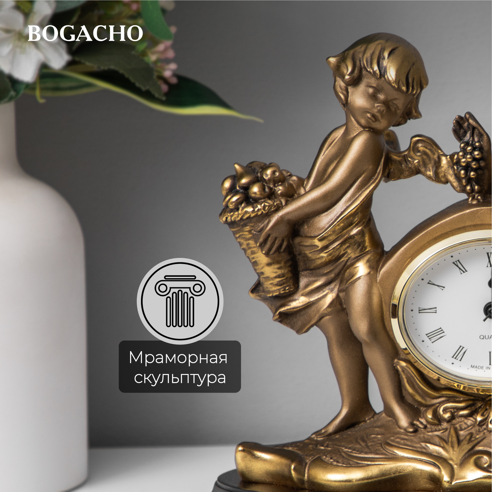 Часы настольные Bogacho Ангелы Путти бронзового цвета информация: