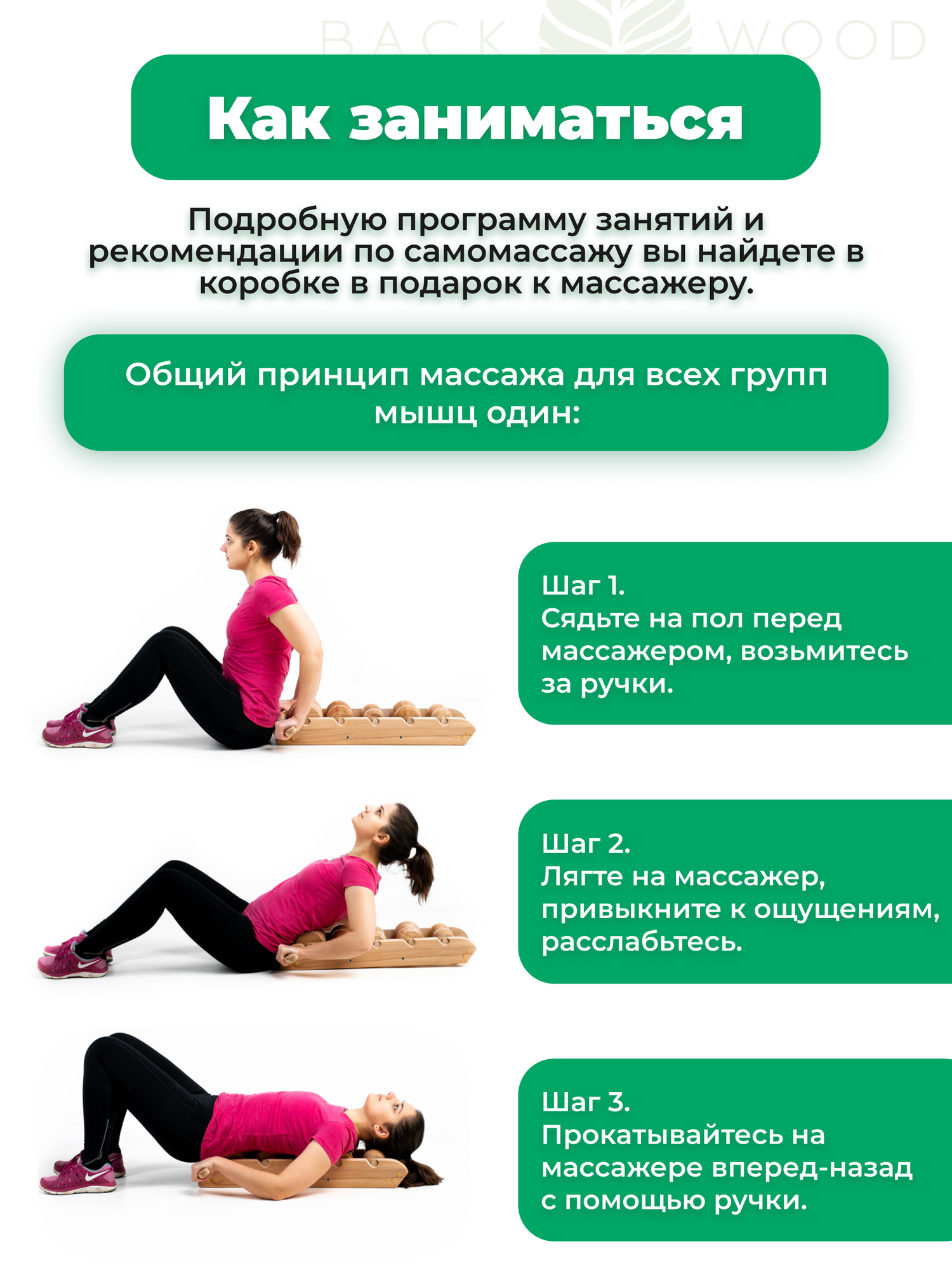 Back Wood Деревянный 6-ти роликовый массажер и тренажер для спины и всего тела"BackWooD" + Шипованный ролик
