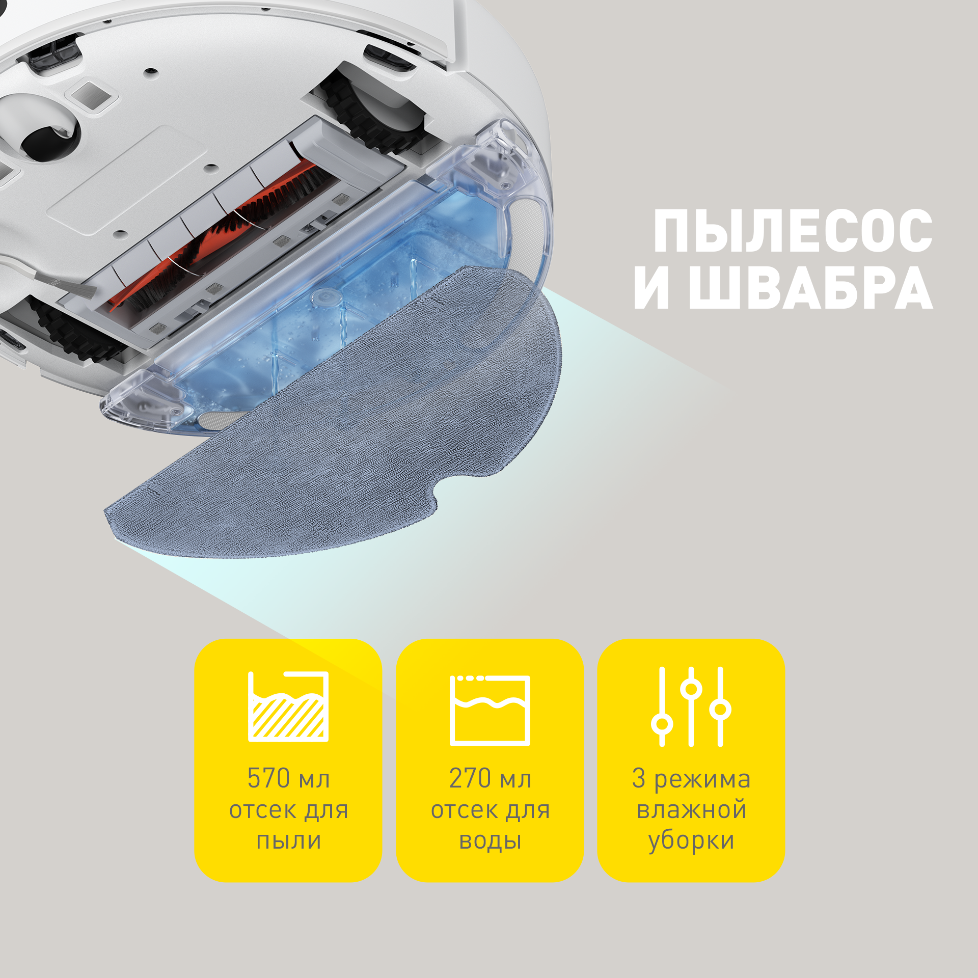 Робот-пылесос Dreame D9 Max White, сухая/влажная уборка, управление cо смартфона/голосовое информация: