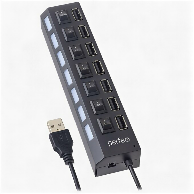 10 цен на USB Разветвитель PERFEO PF-H033, 7 Port Black (PF_C3223)