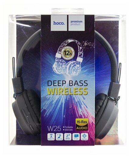Наушники Hoco W25, беспроводные, накладные, BT5.0, 300 мАч, микрофон, черные