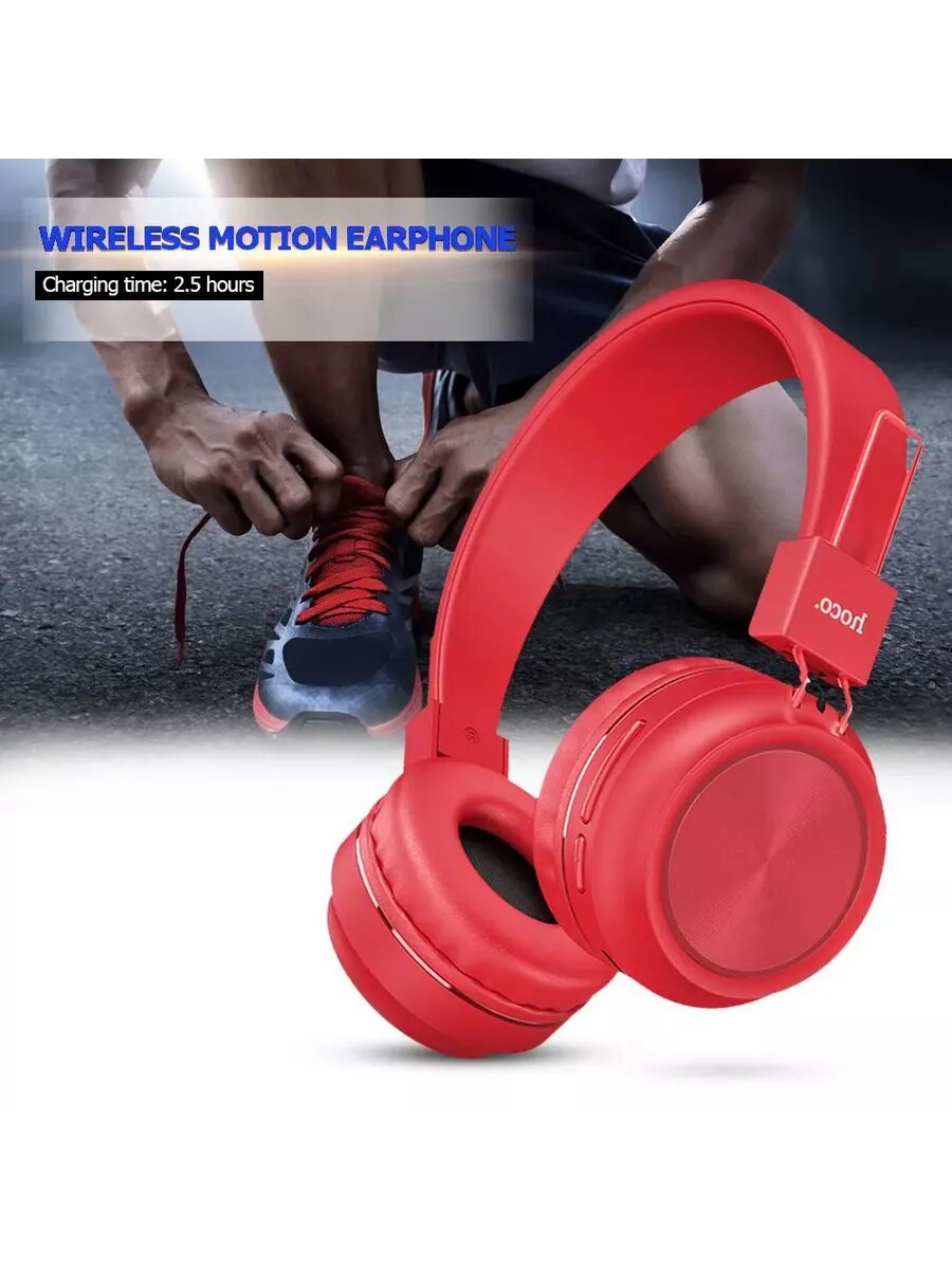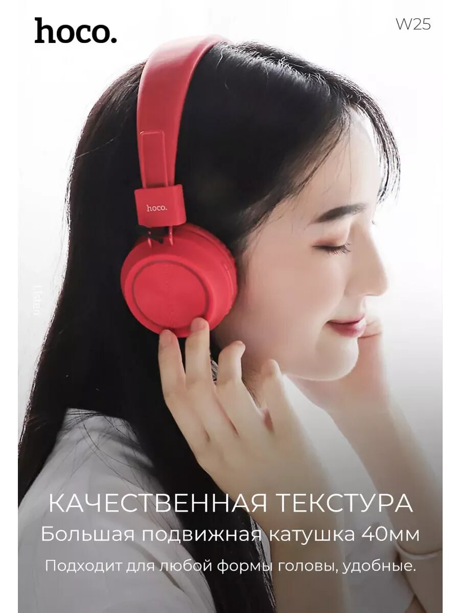 Отзывы на Наушники Hoco W25, беспроводные, накладные, BT5.0, 300 мАч, микрофон, красные