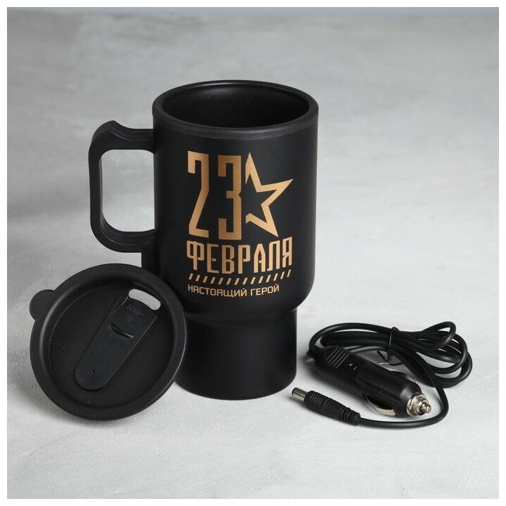 10 цен на MODE FORREST Термокружка, 450 мл, Автомобильная «23 февраля», сохраняет тепло 3 ч, с подогревом от прикуривателя