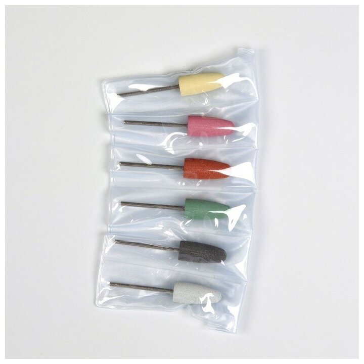 Фрезы силиконовые для полировки, в пакете, 6 шт, d = 10 мм, разноцветные информация: