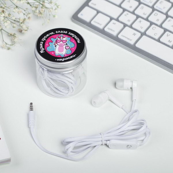 Наушники в банке, "Единорог", вакуумные, белые информация:
