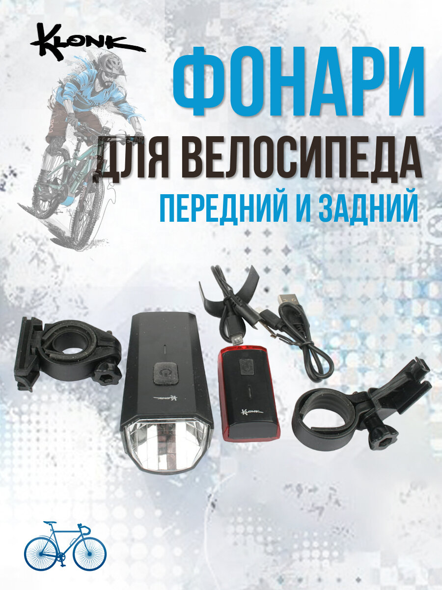 Комплект велосипедных фонарей Klonk 11950, передний и задний информация:
