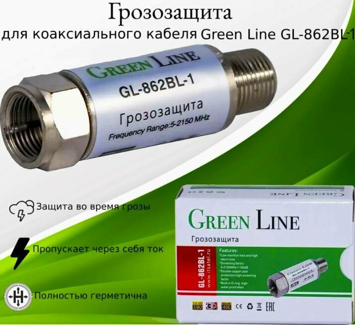 Отзывы на Грозозащита для коаксиального кабеля Green Line GL-862BL-1 диапазон 5-2150 мГц