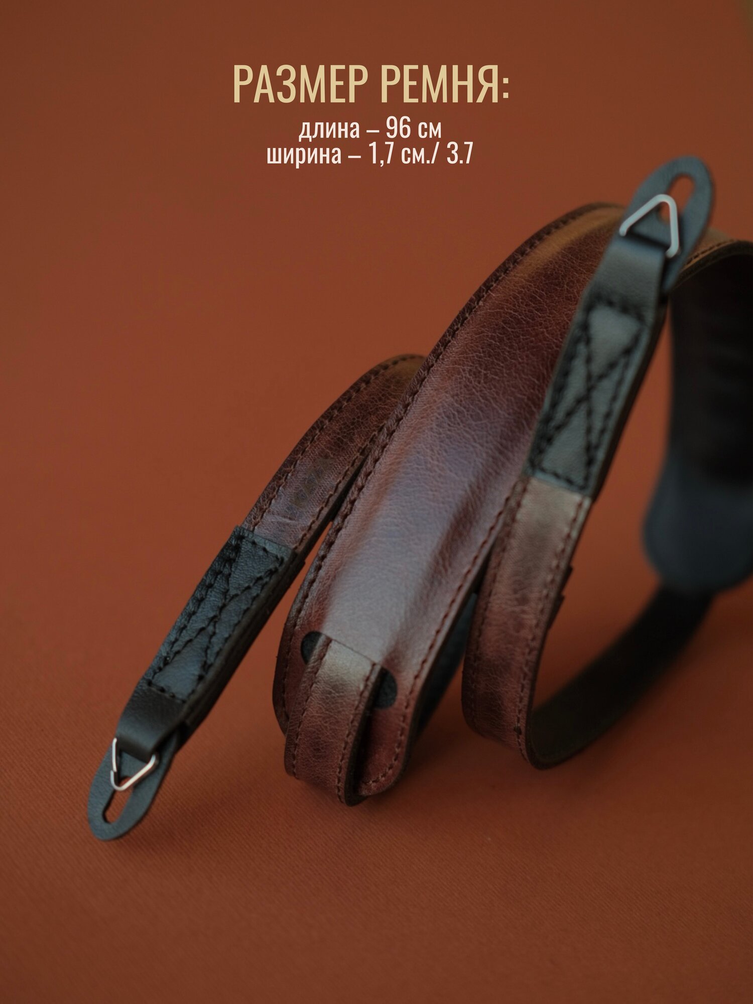 Ремень кожаный для фотоаппарата и камеры натуральная кожа KAZA темно-коричневый мрамор информация: