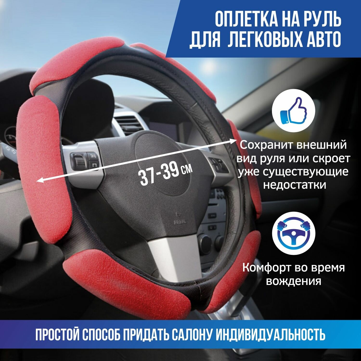 10 цен на Оплетка на руль "M", 38см, спонж 6 лепестков, красный