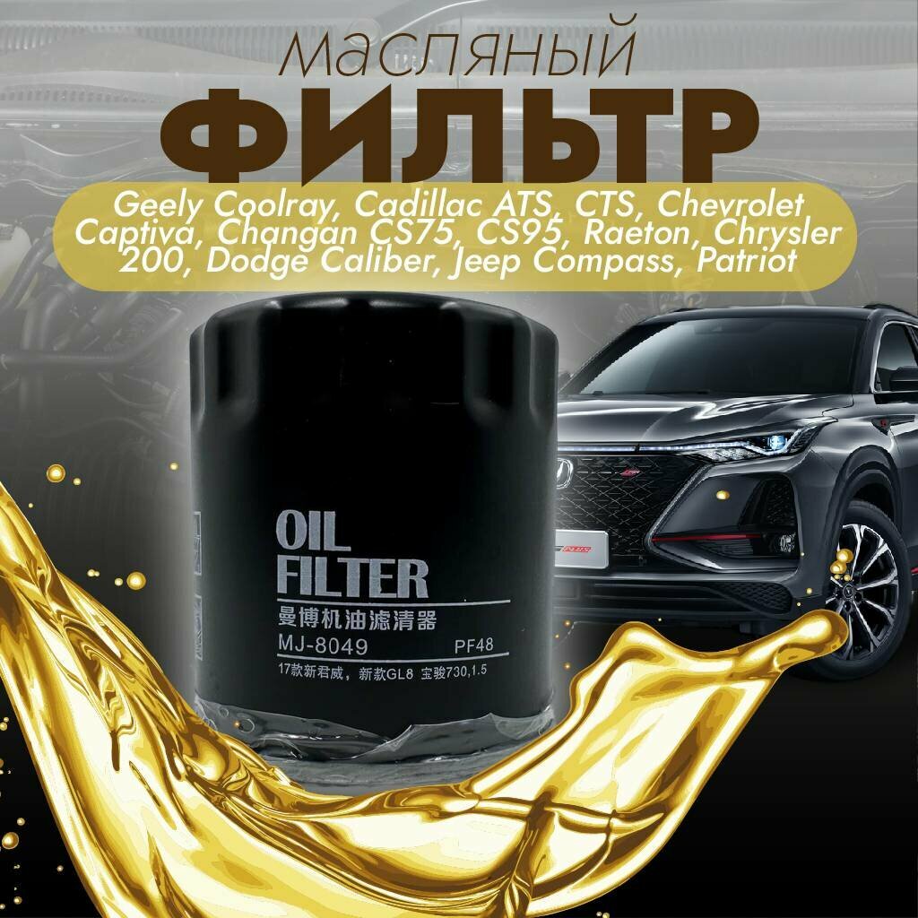 Фильтр масляный Manbo MJ-8049 (MJ8049) для Chrysler 200, Jeep Compass, Patriot, Geely Coolray, Cadillac ATS, CTS, Chevrolet Captiva, Dodge Caliber, Changan CS95, Raeton, CS75 информация:
