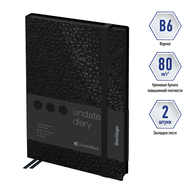Ежедневник недатированный Berlingo B6, 136 л, "DoubleBlack", черный срез, черный (UD0_94602)