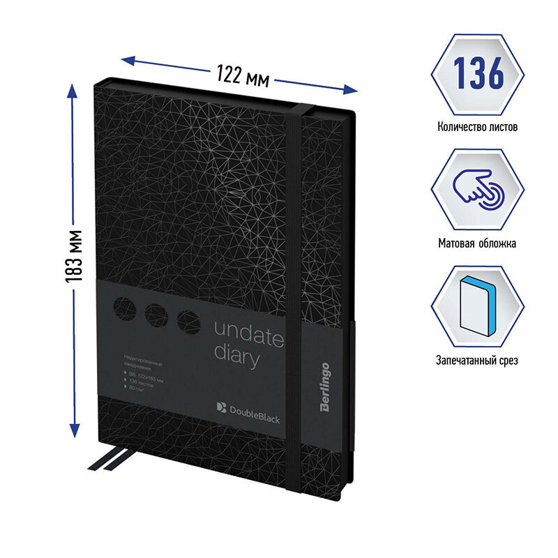 Ежедневник недатированный Berlingo B6, 136 л, "DoubleBlack", черный срез, черный (UD0_94602)