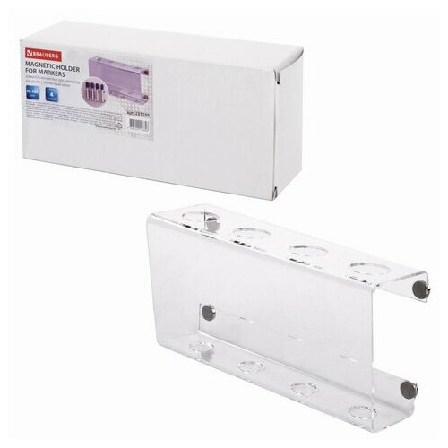 Держатель магнитный для 4 маркеров для доски (85х160 мм), прозрачный акрил, BRAUBERG, россия, 235530