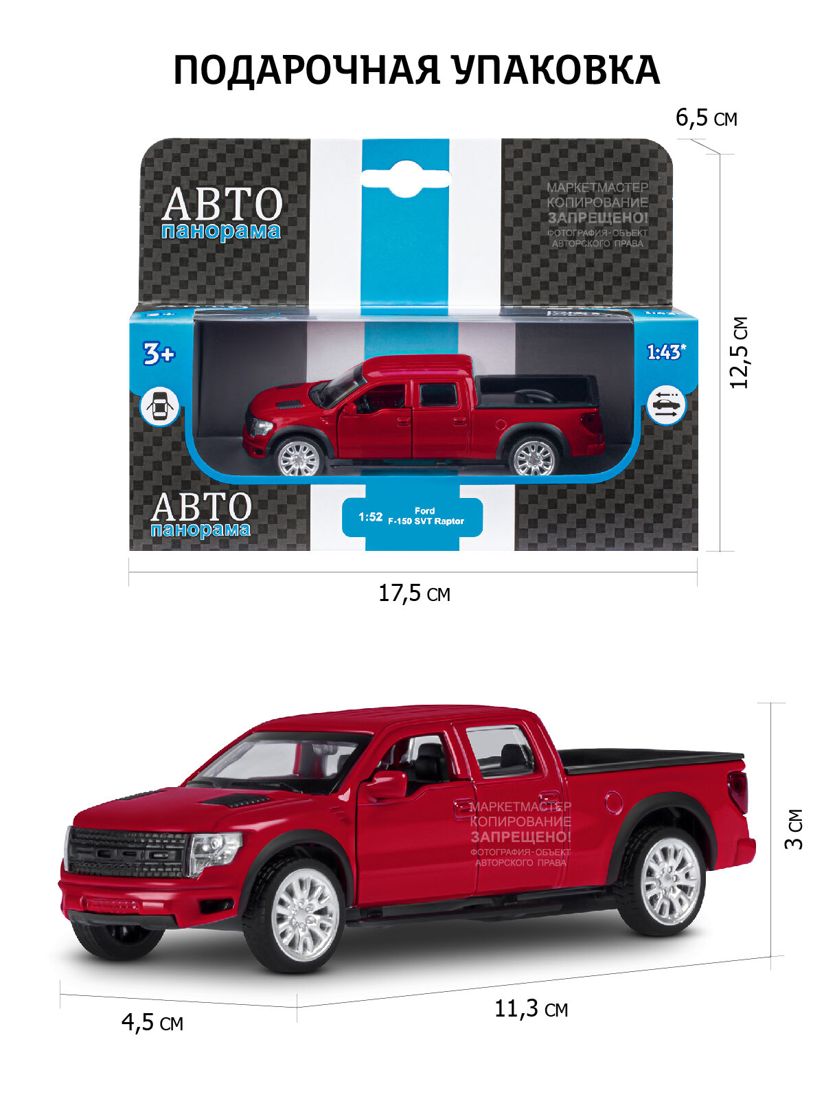 Машина "автопанорама" Ford F-150 SVT Raptor-2, красный, 1/52, инерция, в/к 17,5*12,5*6,5 см 790 ₽