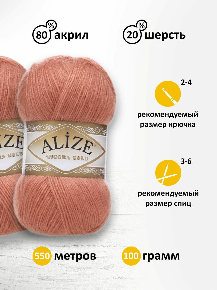 Пряжа для вязания крючком, спицами Alize Ализе Angora Gold, тонкая, акрил/шерсть, цвет 652, ангора, 5 шт. по 100 г, 550 м 1 638 ₽