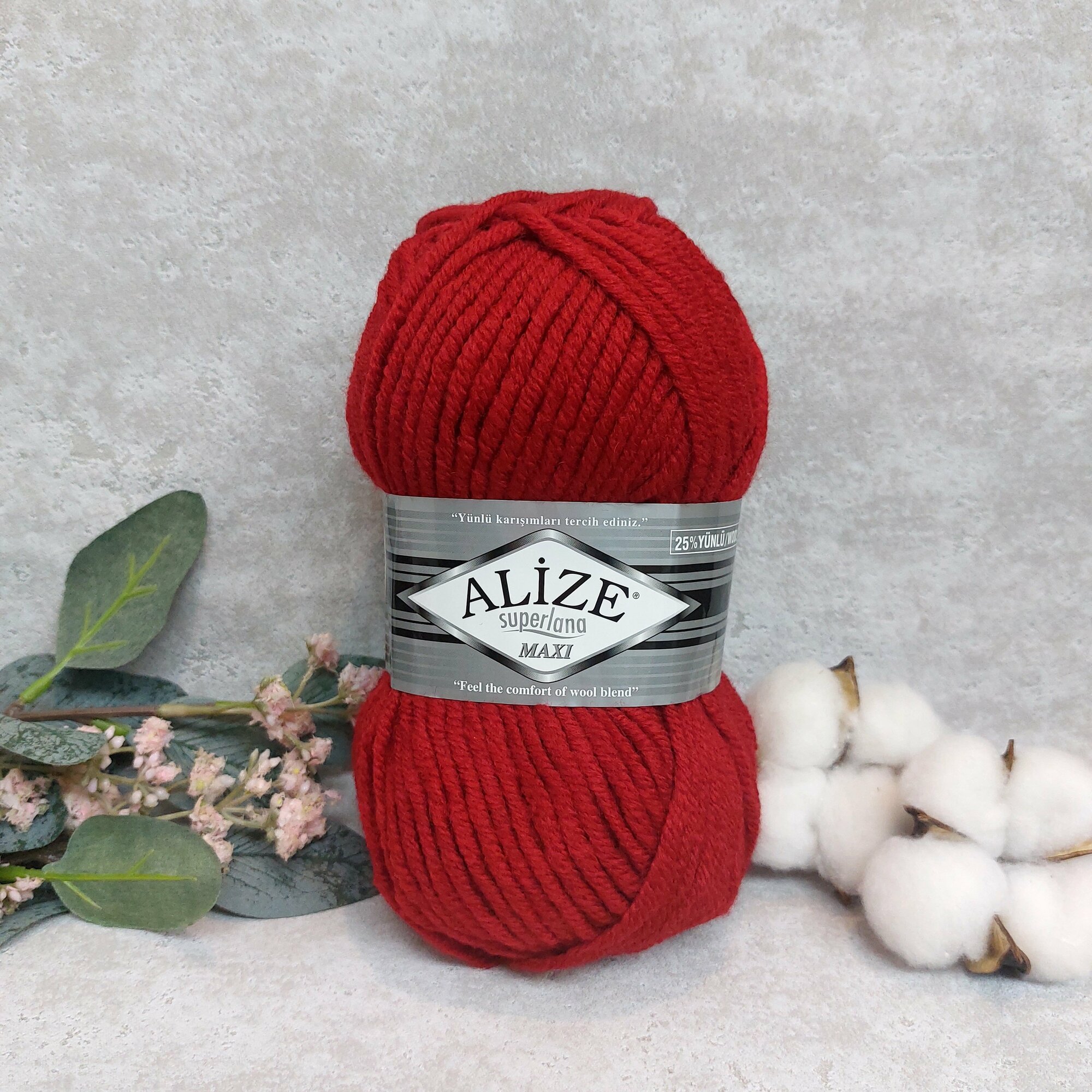 10 цен на Пряжа Alize Superlana Maxi (Ализе Суперлана Макси) - 3 мотка 56 красный 75% акрил, 25% шерсть 100м/100г