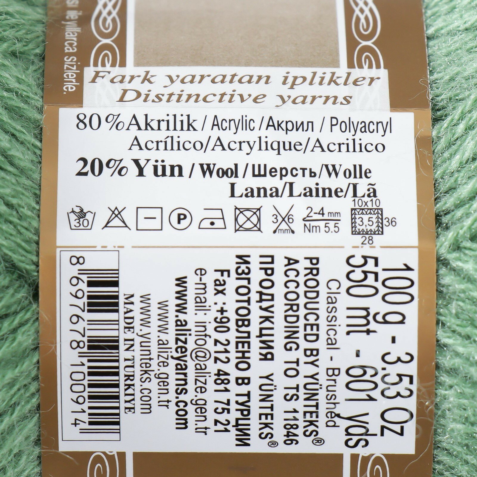 пряжа Ангора Голд Alize Angora Gold упаковка 5 мотков 100 г. 550 м. 20% шерсть 80% акрил цвет 839 липа 1 622 ₽