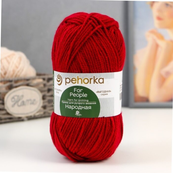 Пряжа Пехорская ПТ "Народная" Шерсть-30%, Акрил-70% 5 шт.х100г 220м №088 красный