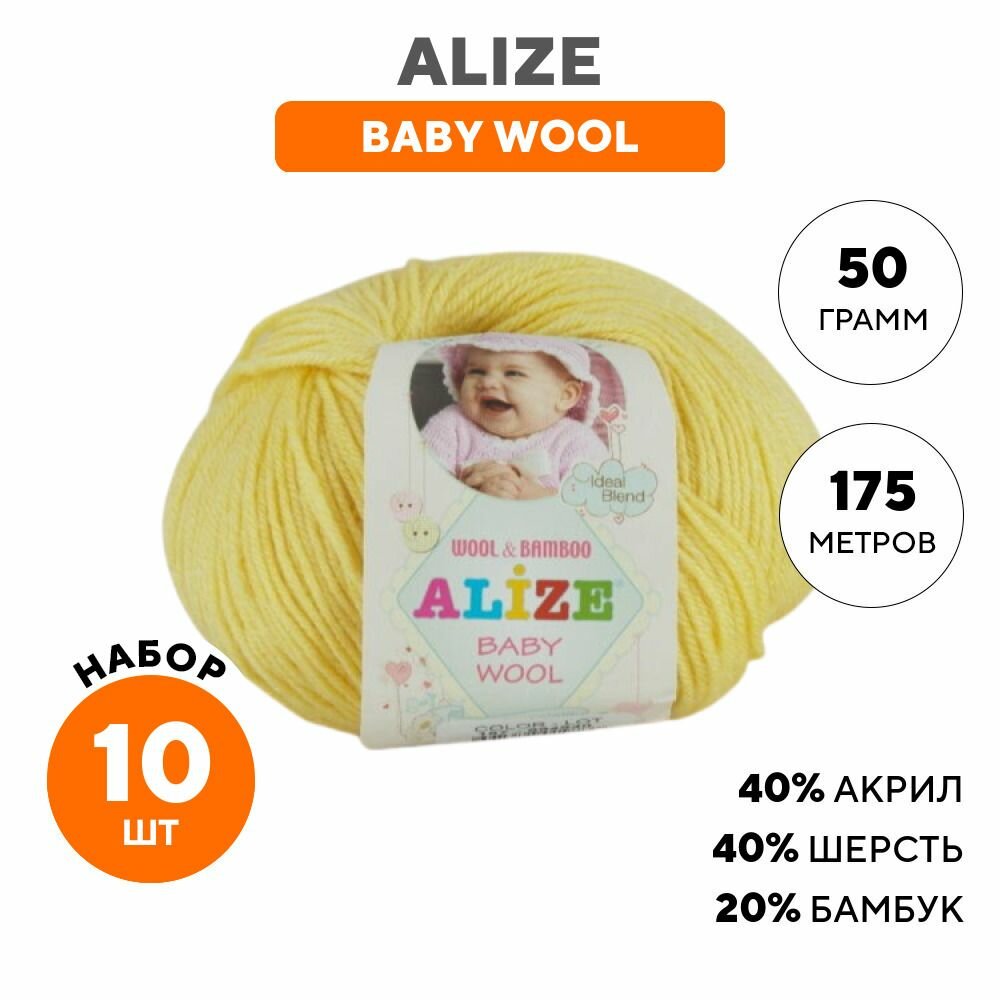 10 цен на Пряжа Alize Baby Wool (Ализе Беби Вул) - 10 мотков Цвет: 187, Лимонный, 40% шерсть 20% бамбук 40% акрил, 50 г / 175 м