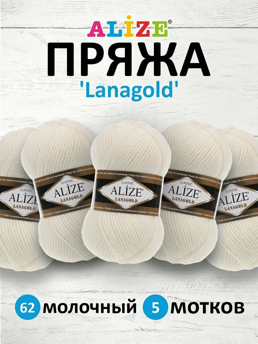 Пряжа 5 шт Alize Lanagold молочный (62)