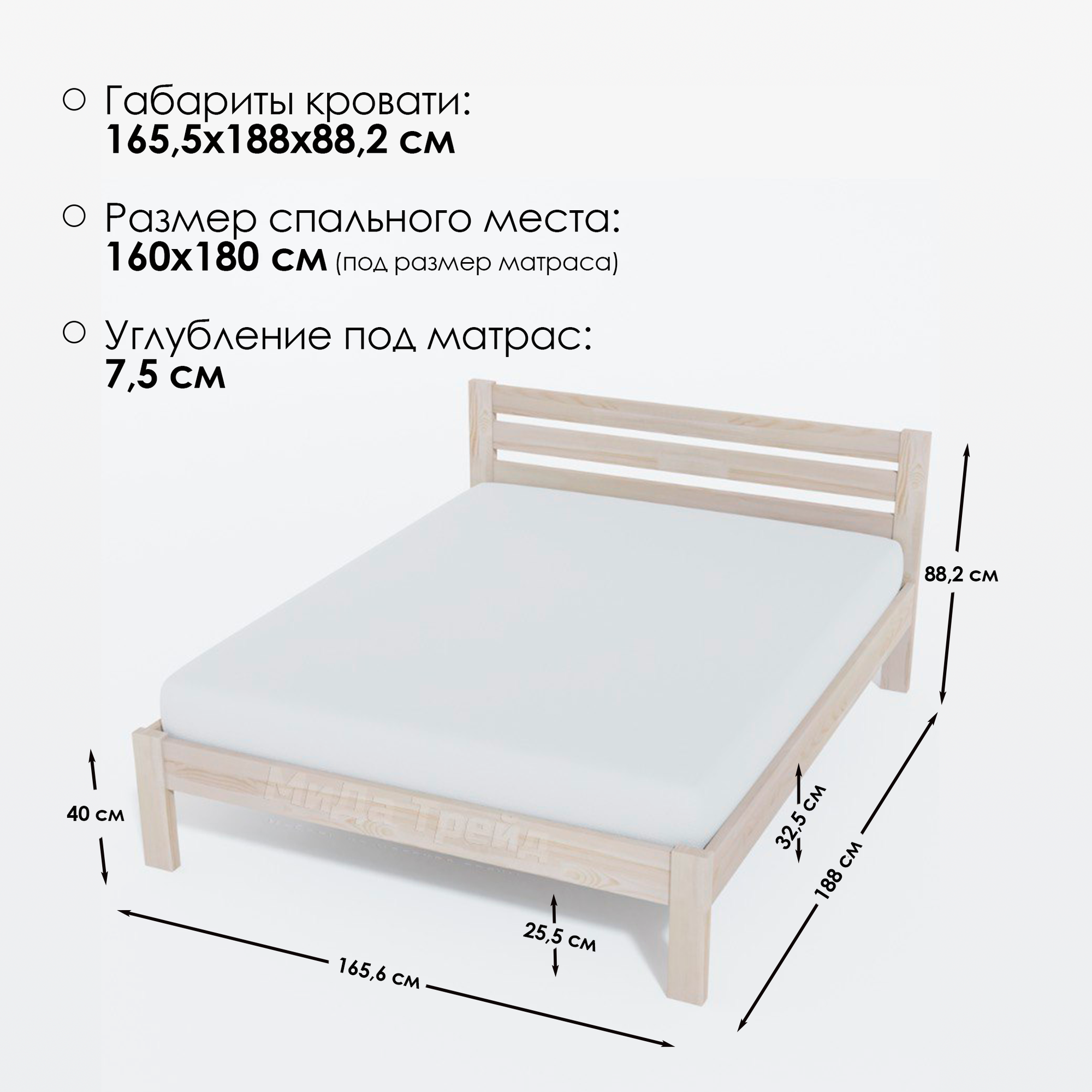 Кровать двуспальная деревянная 160х180 см "Амелия", массив сосны, без покраски МиДа-Трейд информация: