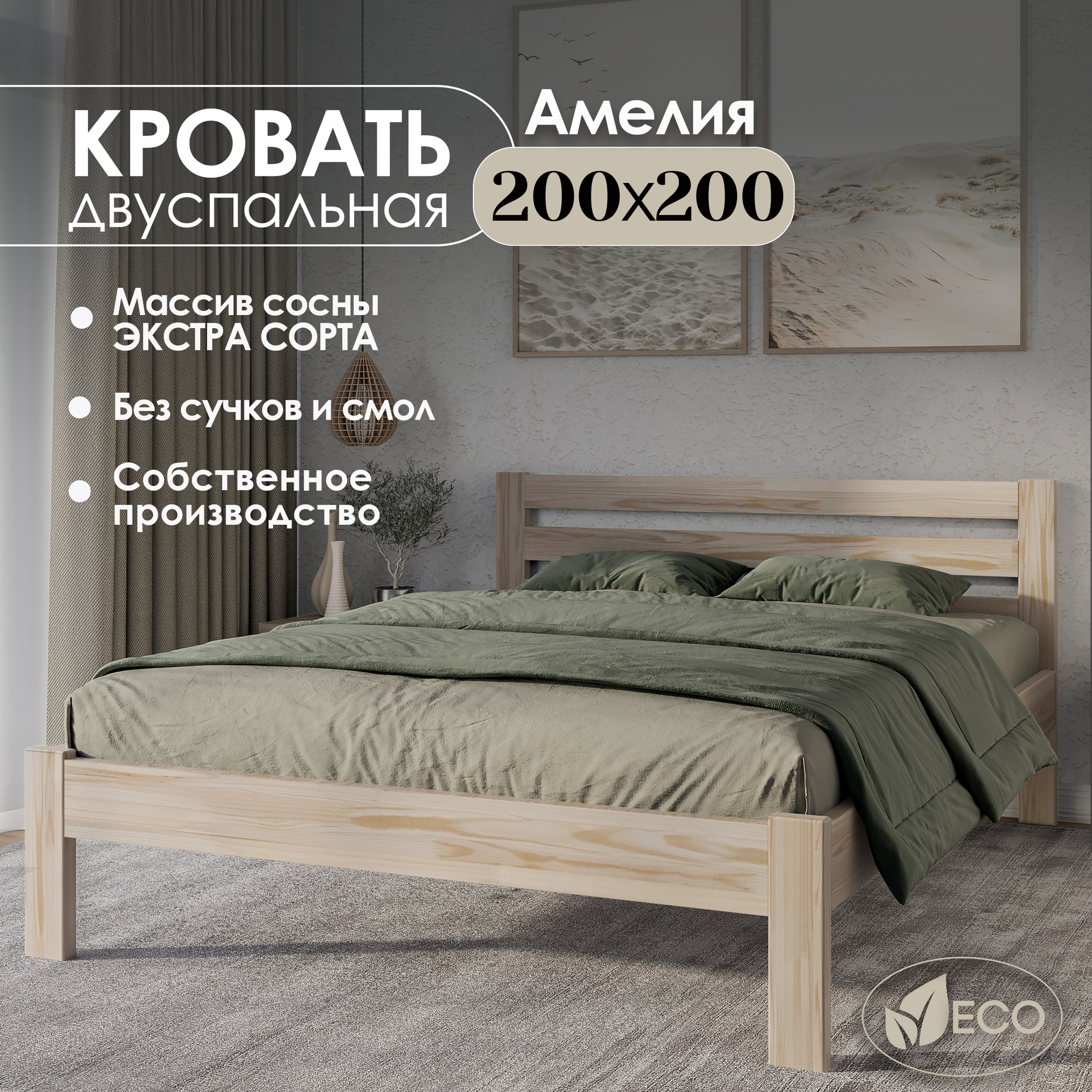 Отзывы на Кровать двуспальная деревянная 200х200 см "Амелия", массив сосны, без покраски МиДа-Трейд